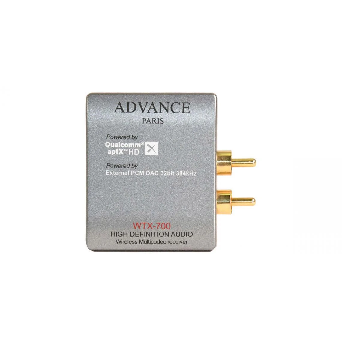 Le WTX-700 du fabricant français Advance Paris est un rĂ©cepteur Bluetooth qui va vous permettre d’apporter une connectivitĂ© sans-fil Ă votre amplificateur Hi-Fi ou home-cinĂ©ma exceptent de la connectivitĂ© Bluetooth. Advance Paris WTX-700 : Bluetooth aptX HD La diffĂ©rence avec le Dongle Bluetooth WTX-500, provient du codec qui est aptx-HD pour le Advance Paris WTX-700. La transmission du signal est alors sans perte ni compression permettant ainsi d’obtenir une qualitĂ© audio supĂ©rieur. De plus, il embarque un convertisseur numĂ©rique-analogique TI PCM pour encore plus de fidĂ©litĂ©. Avec son DAC Texas Instruments 32 bits / 384 kHz vous serez en mesure de restituer un signal Hi-Res jusqu’Ă 24 bits. De conception audiophile, le rĂ©cepteur sans-fil Bluetooth Advance Paris WTX-700 Ă©met un rapport signal bruit et un taux de distorsion très faible pour une meilleure restitution du son ! La sortie analogique RCA de ce rĂ©cepteur Bluetooth permet de le brancher avec la plupart des prĂ©amplificateurs et amplificateurs du marchĂ©. En cas d’Ă©cartement particulier, vous pouvez utiliser une simple rallonge RCA entre le rĂ©cepteur audio Bluetooth Advance Paris WTX-700 et votre appareil audio. Entraxe des deux connecteurs = 1,5 cm