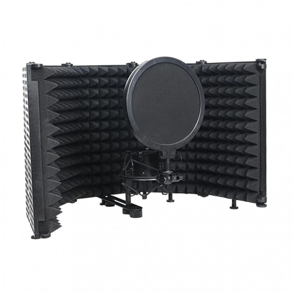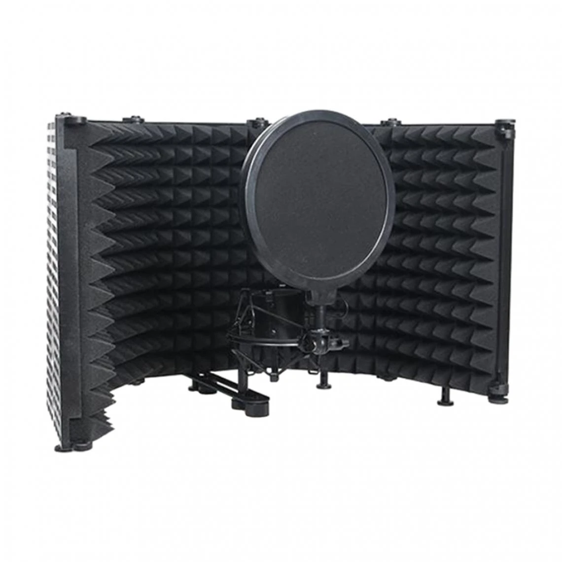 Conception Ă 5 panneaux, pliable pour les ajustements d’angle, vous offrant une insolation optimale, peut ĂŞtre fixĂ© sur une table ou ĂŞtre montĂ© sur le pied du microphone.