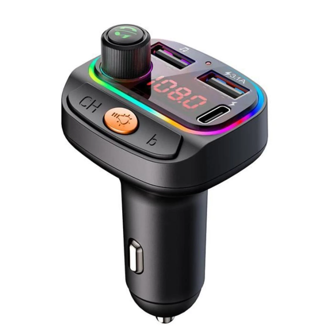 Transmetteur FM Bluetooth pour voiture USB 3.1A Type-C Chargeur rapide Radio MP3.