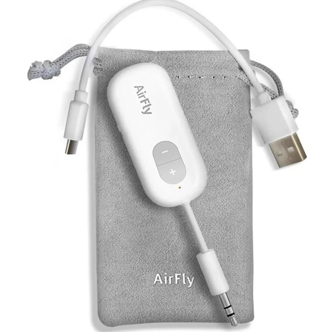 Transmetteur Bluetooth Airfly SE de Twelve South. Émetteur / rĂ©cepteur Jack 3.5mm. Connexion avec une paire d’Ă©couteurs ou un casque. Autonomie 20h. Pochette de transport, câble de charge USB-C et Ĺ“illette pour porte-clĂ© inclus.