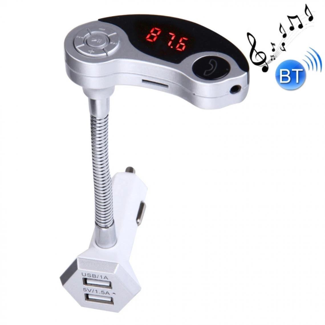 Transmetteur FM Auto argent Dual USB Chargeur voiture Bluetooth Kit, Support LCD Affichage / TF Carte Musique Jeu / Mains libres