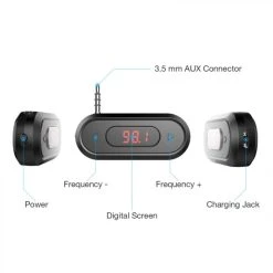 Transmetteur FM Auto noir Multifonctionnel de Voiture Sans Fil Récepteur de Musique avec 3.5mm Jack et Affichage LCD, Appui Mains Libres