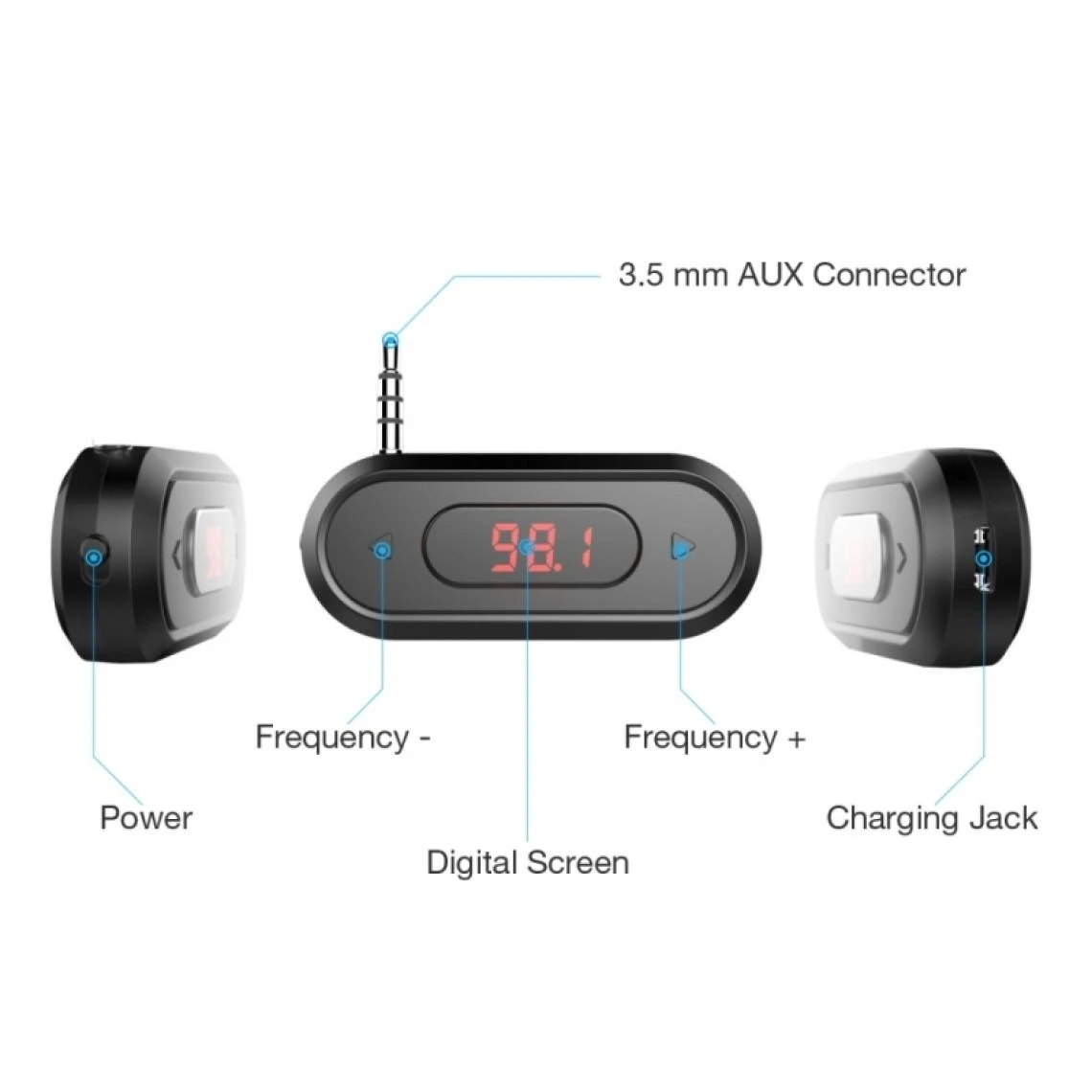 Points forts Wewoo Transmetteur FM Auto noir Multifonctionnel de Voiture Sans Fil Récepteur de Musique avec 3.5mm Jack & Affichage LCD, Appui Mains Libres