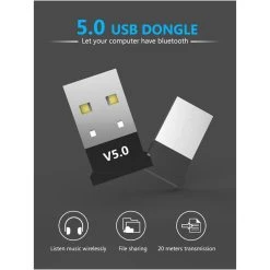 5.0 adaptateur Bluetooth laisser l’ordinateur avoir la fonction bluetooth, soutenir la connexion multi-pĂ©riphĂ©rique pour rĂ©aliser la connexion entre l’ordinateur et d’autres pĂ©riphĂ©riques bluetoothMobile tĂ©lĂ©phone tablette souris clavier oreillette bluetooth gamepad, etc.Ordinateur de bureau sans fonction bluetooth, transmission sans fil bluetooth.Connectez le casque bluetooth au support sans fil Ă©couter de la musique, des appels vocaux.
